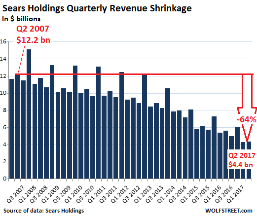 But revenues won’t drop to zero. Sears won’t last that long. A bankruptcy filing in the near future is becoming inevitable as creditors and vendors are getting very edgy. Some vendors have now stopped supplying Sears, according to Reuters, fearing to be left holding the bag in a bankruptcy and unwilling to pay the high costs of insurance on their Sears receivables.