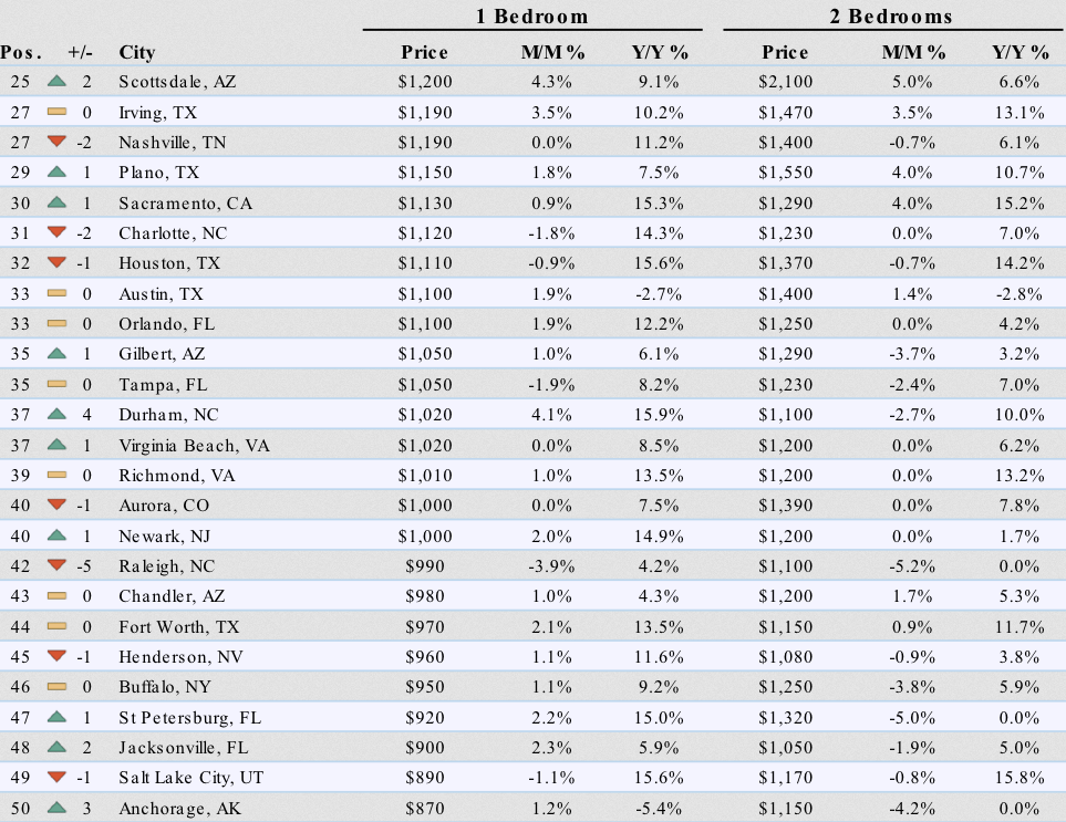 - Charlotte, NC (+15.3% and +11.2%)