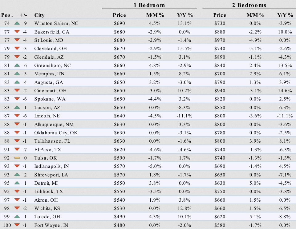Below is Zumper’s list of the top 100 most expensive rental markets and price movements. Check out your city (click on table to enlarge).