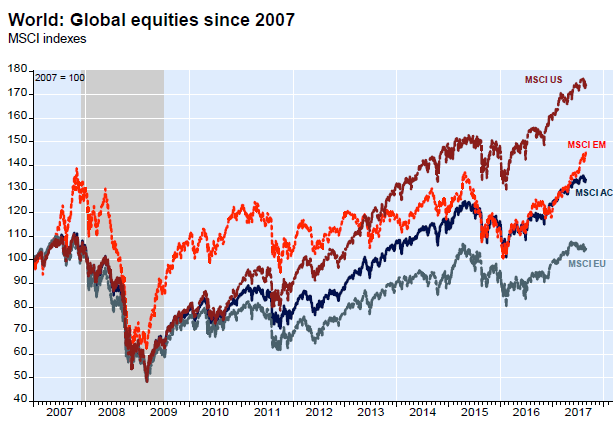 • Even the MSCI EU for European equities is above its level in 2007.