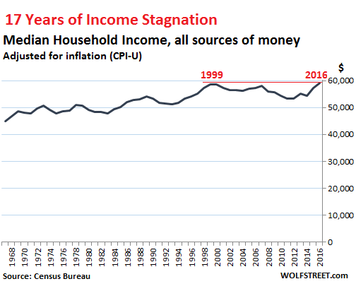 This was the good news, with median household income finally a tad above where it had been 17 years ago: