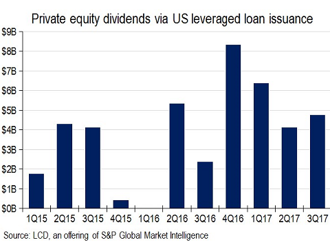 So just how much have PE firms paid themselves in special dividends extracted from their portfolio companies? $4.76 billion in the third quarter, bringing the year-to-date total to $15.3 billion. So the year-total for 2017 is going to be a doozie.