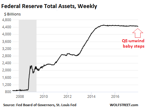 For the first three months, the QE unwind only removes about $10 billion a month, a negligible amount, given the vast markets and excess liquidity. But it picks up steam every three months. By October 2018, if the plan is still on, the QE unwind will remove $50 billion a month from the markets. This process will do the opposite of what QE had done: it will gradually destroy some of the $3.6 trillion that the Fed had created during QE. And by that time the broader effects of QE – asset price inflation – should also start to reverse.