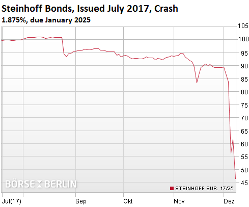 The €800 million of bonds that Steinhoff Europe AG issued during the halcyon days of June 2017 had traded at over 100 cents on the euro in August. By Tuesday, they’d dropped below 85. On Wednesday they crashed to 56. On Friday, they closed at 46.56 cents on the euro: