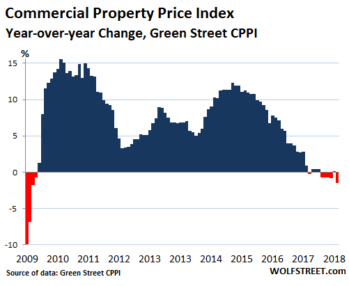 These price declines in the retail sector are starting to coalesce into a serious move – and it’s just the beginning. The mall sector will provide ample pain to lenders and holders of commercial mortgage-backed securities as this washes out over the next few years. There are always some winners anytime there is a major structural shift. And if not here, there is always Cayman Islands real estate for sale. In terms of the shift from brick-and-mortar retail to e-commerce, CRE is benefiting in the industrial sector and is getting crushed in the mall sector. But this shift is happening within the overall downturn of CRE, after a most phenomenal seven-year price surge, funded by cheap loans that are now getting a lot more expensive.