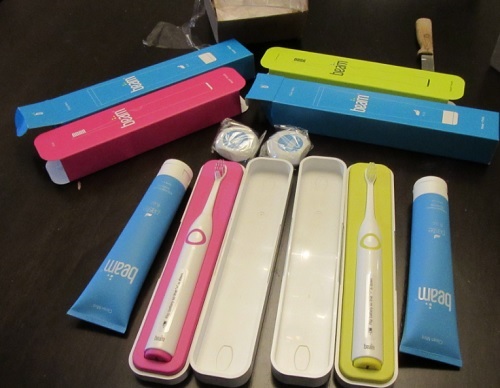 Last December, we changed dental insurance. The new insurer included in its offering a set of “free” electric toothbrushes, the vibrating “sonic” kind called evocatively “Beam Brush.” One for each of us. My wife chose the colors when she ordered the brushes, as you will notice in a moment.