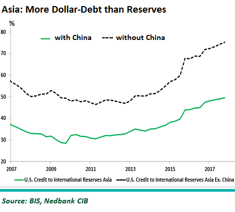“Excess liquidity usually leads to the misallocation of capital, masking any balance sheet constrains. As this tide of excess liquidity recedes, it reveals the misallocation of capital and the mispricing of risk,” Nedbank CIB strategists Neels Heyneke and Mehul Daya write in a note. And this is particularly the case for excess dollar-liquidity in the Emerging Markets (EMs).