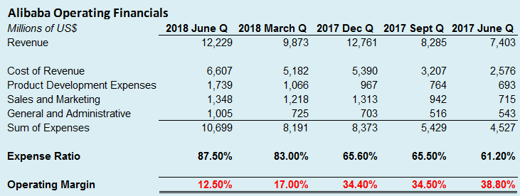 I am also enthralled, and I am not using this word lightly, by Alibaba’s operating financials. What new and revolutionary products are they developing to justify that insane increase in development costs? Perhaps they are studying some slick filter to avoid counterfeit products from showing up for sale on their websites?