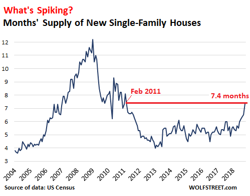 In fact, 7.4 months of supply of new houses was the highest since February 2011, during Housing Bust 1, the first housing bust in this millennium.