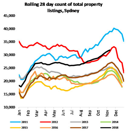 Overall as the housing market weakens and properties take longer to sell, the total volume of stock listed for sale is increasing. Encouragingly in terms of mortgage stress and potential arrears we are not seeing a significant dumping of new stock onto the market. If anything, in Sydney and Melbourne vendors are realizing that it is an inopportune time to sell and fewer vendors are now listing. Of course, this is not to say things can’t change and it is expected that total listings will continue to climb and selling homes will take longer.