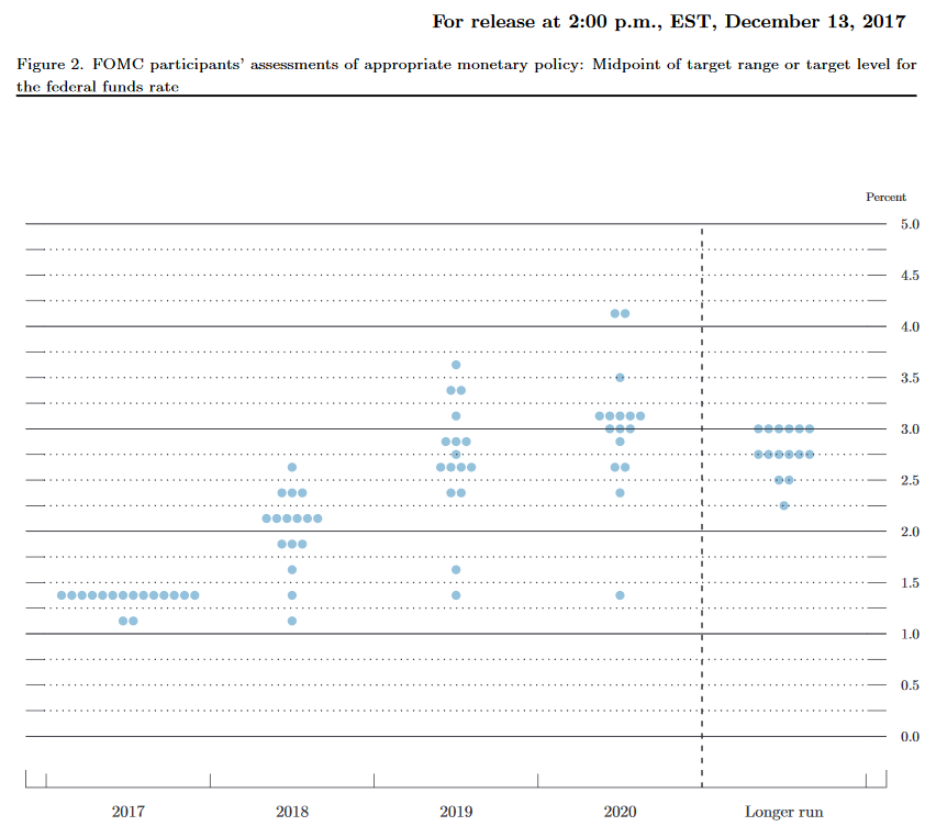 So six members see three rate hikes in 2019. That is more than the four members a year ago that saw the four rate hikes in 2018 that actually came to pass (dot plot).