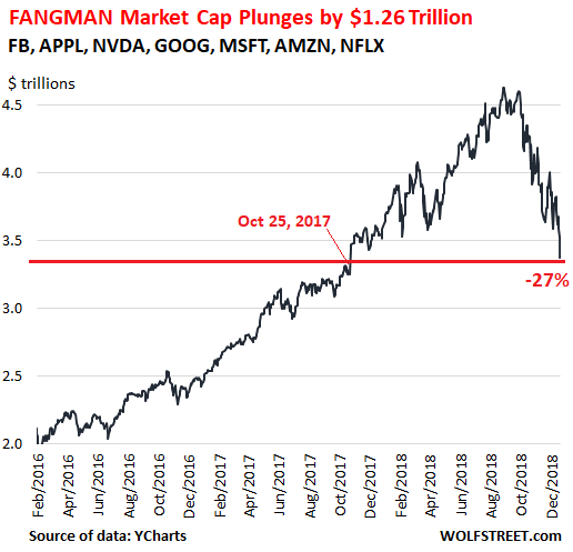 This list shows the illuminating plunge of the individual FANGMAN stocks from their highs earlier this year: