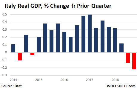 Italy’s economy as measured in real GDP shrank for two quarters in a row, which puts it into a “technical recession”: