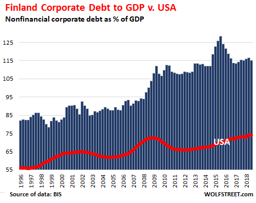 #11 Finland corporate debt-to-GDP ratio 115.1%: