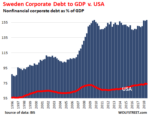#6 Sweden corporate debt-to-GDP ratio 158.2%: