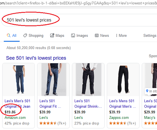 I just googled: 501 levi’s lowest prices. And this is what came up: