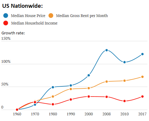 This topic has been better described by economist Michael Hudson who has pointed out the inevitability of these data due to shifting to finance and away from manufacture. The logical outcome is raising the cost of housing by lowering the standards for mortgages, thereby increasing demand.