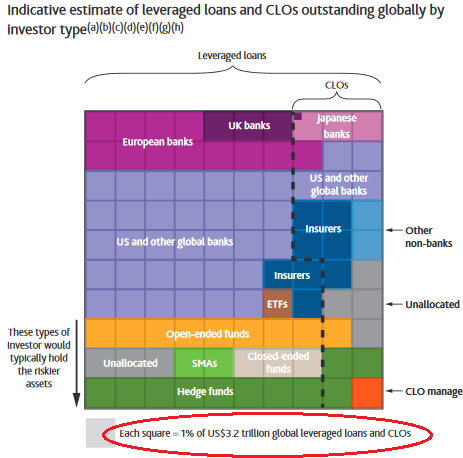 I think may readers are not clear between what a leveraged loan (the loan itself) is versus what a CLO is (an SPV which has a pool of leveraged loans) sold in tranches where the payment stream is the collateral, versus funds or ETFs (that are wrappers) for a pool of investors (including retail) which are invested in leveraged loans. (I avoided the synthetic ones.)