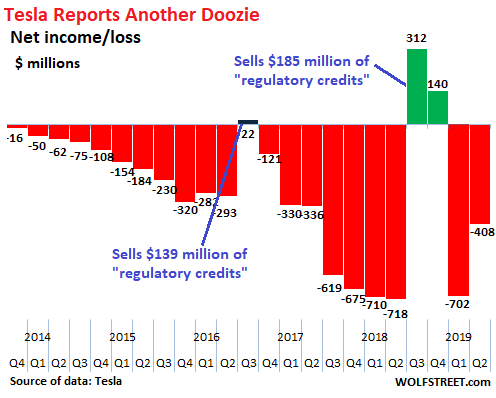 You see, Tesla is different. It just reported another doozie, a loss of $408 million in the second quarter, after its $702 million loss in the first quarter, for a total loss in the first half of $1.1 billion. In its 14-year history, it has never generated an annual profit.