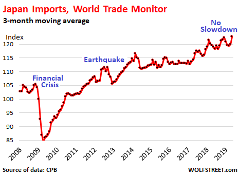 It boils down to this: the trade war and tarriffmageddon have an impact, but companies are still doing what they always do, except they’re shifting their supply chains around, such as from China to Vietnam. Consumers have largely brushed off the rhetoric so far. And services are still strong around the globe.