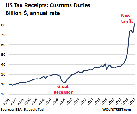 So there is something that would help: Corporations got a huge tax cut on their income, which they did not pass on to consumers; so now the government should cover part of that hole by taxing the goods that corporations import (tariffs), which these companies won’t easily be able to pass on to consumers because prices are set by competition in the market place – and that has been confirmed so far, with economists complaining about “low” inflation despite the tariffs.