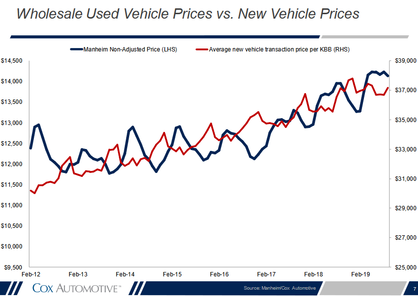 Prices of used versus new vehicle.