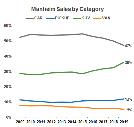 - The share of vans declined to 5% (chart via Manheim):