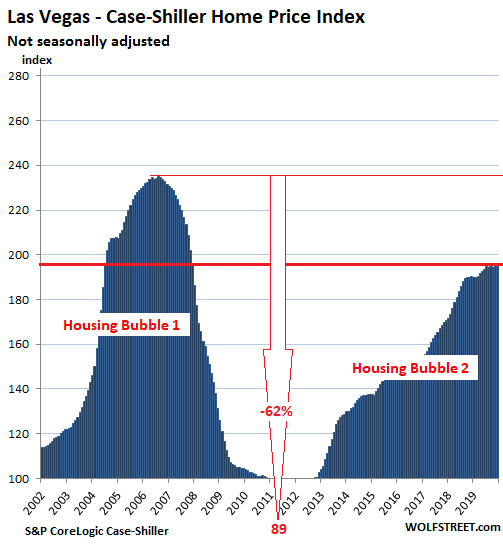 The Case-Shiller Index for the Las Vegas metro edged up 0.1% in December from November and rose 2.6% year-over-year, having been essentially flat for six months: