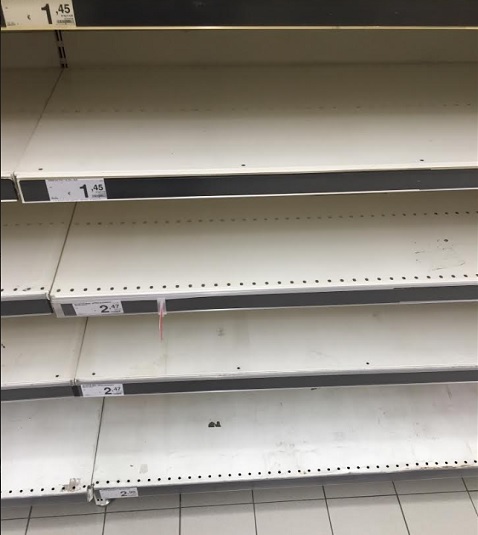 In the first chaotic few days after the original Covid-19 outbreak, the only items that disappeared from the shelves were rusks (a popular hard, dry biscuit or a twice-baked bread) and crackers. These are the empty rusk shelves; I took this photo during the first week of the emergency: