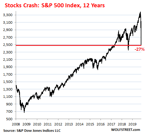 Thursday early afternoon, during the chaos when the S&P 500 was down nearly 9%, what would turn into the worst single-day stock market sell-off since the 1987 crash, the Fed rolled out its fastest mega money-printer yet, after its smaller money-printers malfunctioned. It’s not going to be a long-drawn-out QE – though there is a component that is just that – but it’s going to be trillions of dollars, essentially all at once, front-loaded, starting today, though today fizzled already.