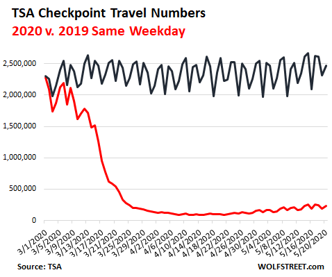 The national “insured unemployment rate” for the week ended May 9, also released today, jumped to 17.2%, from 15.5% in the prior week. For comparison, the record in the pre-Covid-19 era was 7.0% in May 1975.