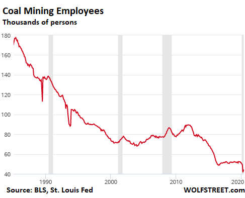 Exporting coal has been the one remaining hope, but in 2019, coal exports fell to 92 million short tons for the entire year (by comparison, total US consumption in 2019 was 587 million short tons). The peak year for exports was 2012, at 126 million short tons. The second highest year was 1981, at 113 million short tons. In other words, coal exports, though they vary widely from year to year, have been in the same range since the early 1980s.