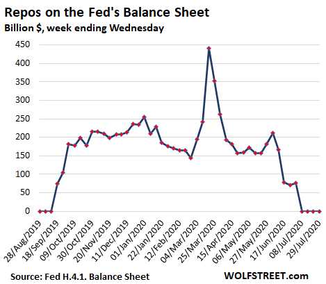 After the Fed made repurchase agreements less attractive in mid-June by raising the bid rate, they fell out of use, though the Fed is still offering them: