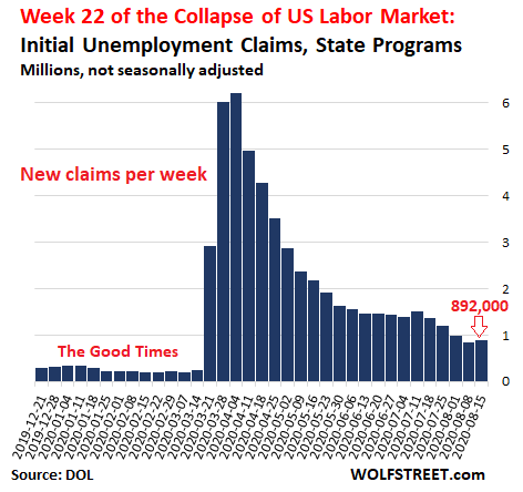 What happened in the latest reporting week for unemployment claims was disconcerting: “Initial” claims under state unemployment insurance programs by newly laid-off workers rose. And initial claims under the federal Pandemic Unemployment Assistance (PUA) program provided by the CARES Act that covers gig workers, also rose. This means that people lost their work at a faster rate than they did in the prior week.