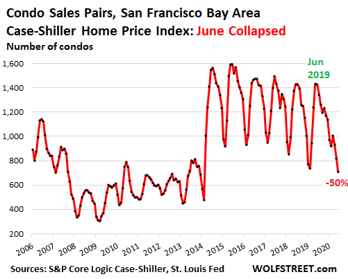 Sales pairs of condos plunged 50.5% year-over-year in June to just 707 condos, during what is normally peak selling season: