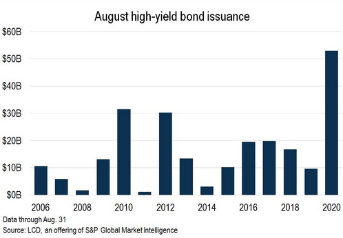 Each of the past four months – May, June, July, and August – set a record in junk bond issuance for that calendar month.