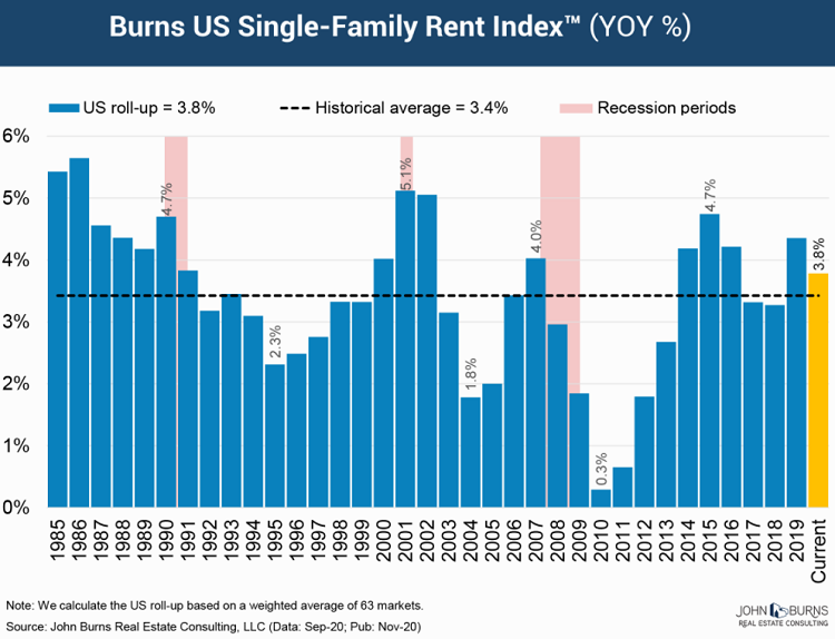 There are a number of reasons why single-family rents are holding up despite the declines in apartment rents in the largest most expensive markets, according to John Burns Real Estate Consulting: