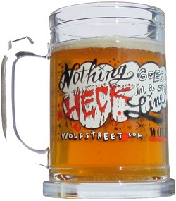 I still have some of these hilarious “Nothing Goes to Heck in a Straight Line” 15-oz glass mugs at my media mogul empire headquarters. But the Wolf Street Store, which was managed by a company where commenter “Ripp” worked, has run out of those mugs, and they’re no longer for sale.