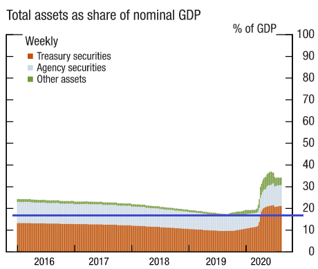 The result is that total assets on its weekly balance sheet through Wednesday, at $7.4 trillion, are roughly flat with the level in mid-December and are up by $200 billion from early June, with an average growth rate over the six-plus months of $30 billion a month.