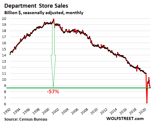This is most painfully the case for department stores, once an iconic American institution. This is the 20-year progression of the demise of department stores that has accelerated in 2020 and is closing in on completion: