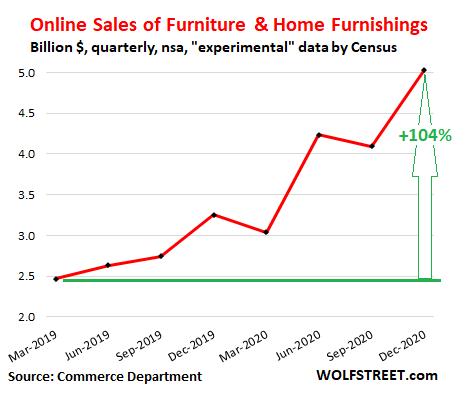 Ecommerce sales of furniture and home furnishings have also more than doubled since Q1 2019, to $5 billion: