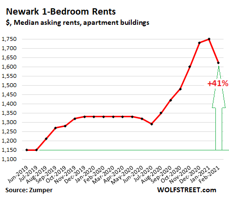 So in February, the 1-BR asking rent plunged 7.4% from January, but was still up 20% from a year ago, and 41% from June 2019:
