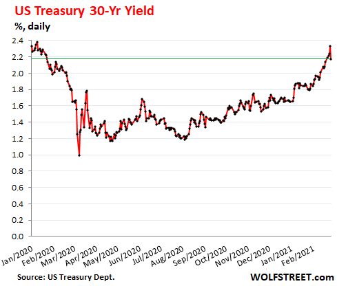 The bond market settled down on Friday. And that was a good thing for the crybabies on Wall Street that had started to hyperventilate on Thursday, when the Treasury 10-year yield, after rising for months, and accelerating over the past two weeks, had spiked to 1.52%, having tripled since August.