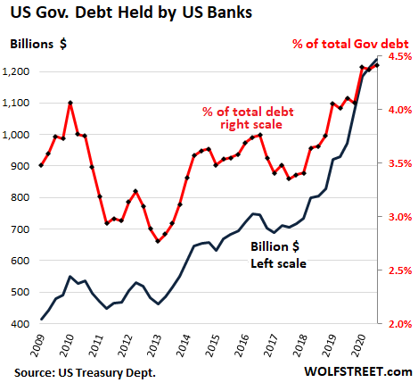 Would not that 3.92 trillion flood into the economy as bank loans and turbocharge it? This might very well get the Fed above its inflation mandate. It might be the quickest way to inflate away all the debt they’re creating.
