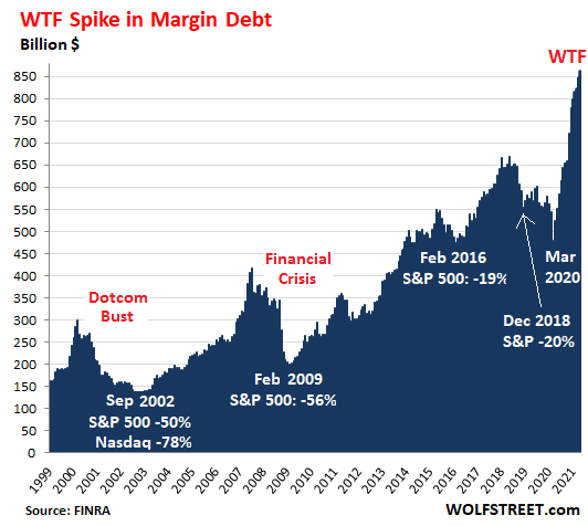 But there is one form of stock market leverage that is tracked: Regular margin loans at brokers that are reported by brokers to FINRA, which then reports them on a monthly basis, which it just did, and they’re a doozie.