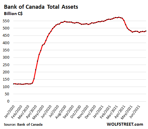 The assets on its balance sheet have now dropped from C$575 billion at the peak in March, to C$481 billion as of June 30:
