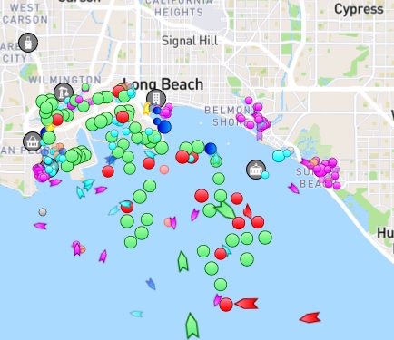 Part of the reason for the container shortage is that container ships are tangled up in port congestion which continues to dog the shipping industry. Marine Traffic shows this image of the Ports of Los Angeles and Long Beach. The round dots offshore are about two dozen ships that are waiting to unload, though that is down from peak congestion in early February of about 40 ships.