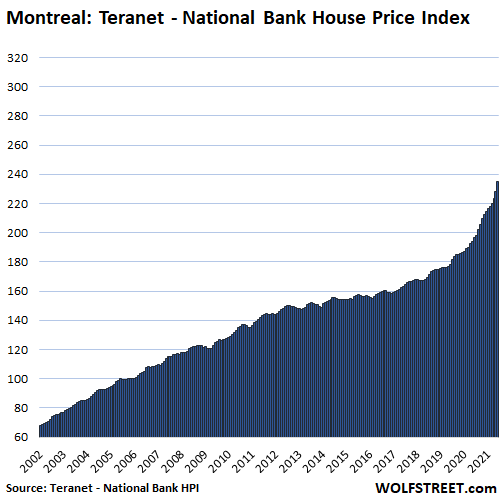 In Montreal, house prices jumped 2.8% for the month and 19.4% year-over-year: