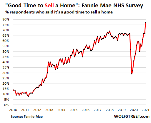 And a record 77% of respondents said that it was a “good time to sell a home”: