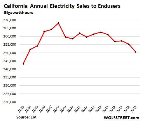Data-free Nonsense. Here are electricity sales in California. This has been a declining business for over a decade. EVs are the best thing that electric utilities have been hoping for, except EVs are too slow in coming: